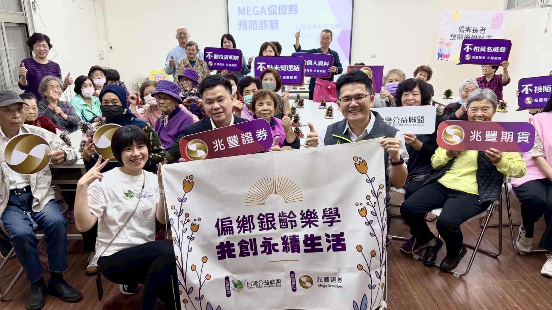 圖說:兆豐證券攜手台灣公益聯盟走進新北市雙溪區平林里辦理「銀齡防詐 X 永續生活」活動,與在地長者共同推廣防詐與金融教育觀念。